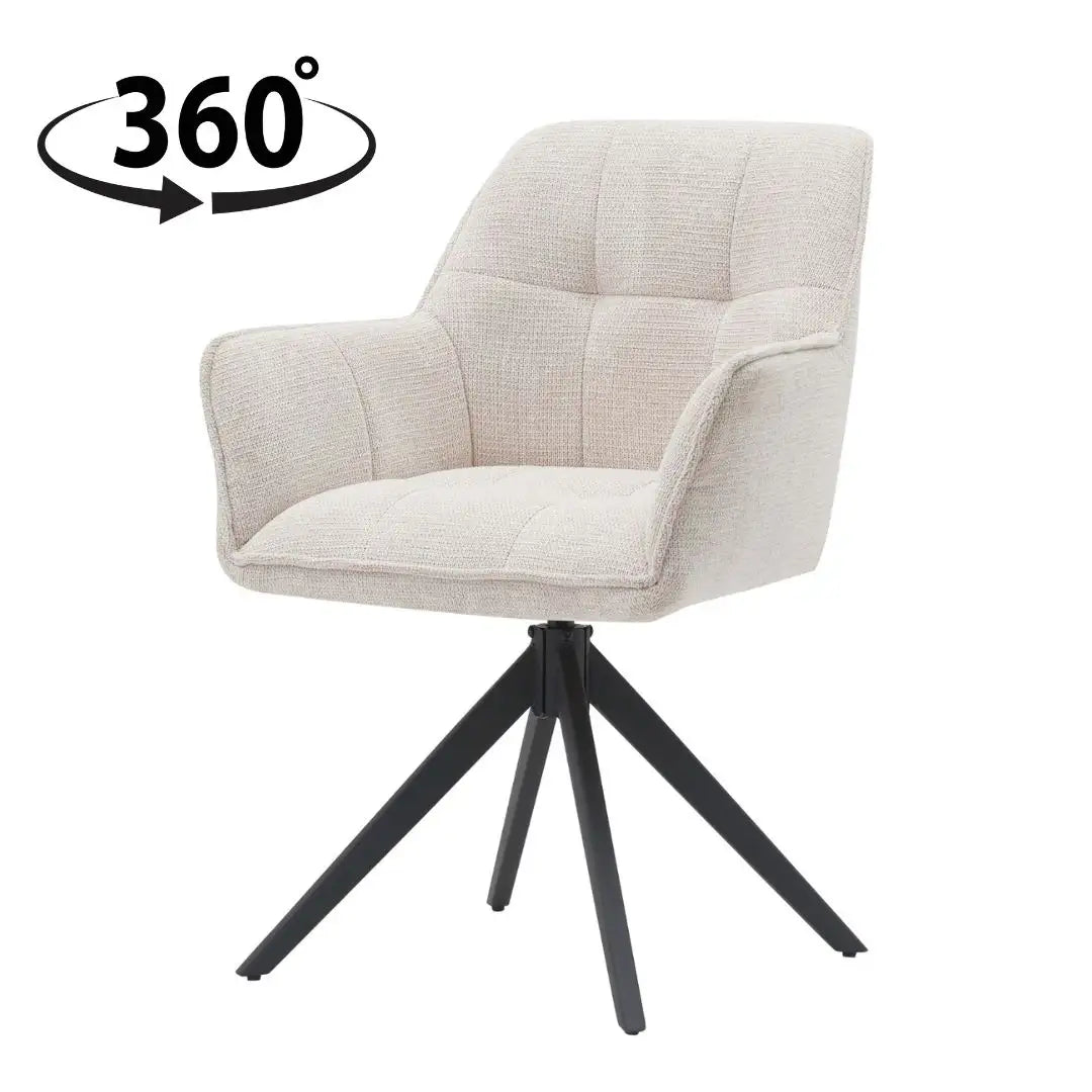 Een extra praktische eigenschap van de "Elodie" is de 360 graden draaibare zitting met automatische terugslag. Dit biedt flexibiliteit in gebruik, terwijl de stoel altijd netjes terugkeert naar zijn oorspronkelijke positie. Deze slimme combinatie van stijl en functionaliteit maakt de Reefs Interior stoel "Elodie" een ideale keuze voor elk modern interieur.