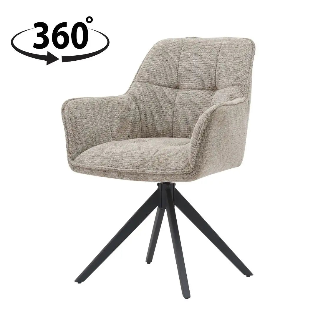 Een extra praktische eigenschap van de "Elodie" is de 360 graden draaibare zitting met automatische terugslag. Dit biedt flexibiliteit in gebruik, terwijl de stoel altijd netjes terugkeert naar zijn oorspronkelijke positie. Deze slimme combinatie van stijl en functionaliteit maakt de Reefs Interior stoel "Elodie" een ideale keuze voor elk modern interieur.