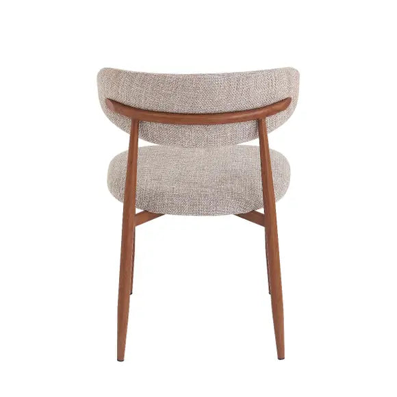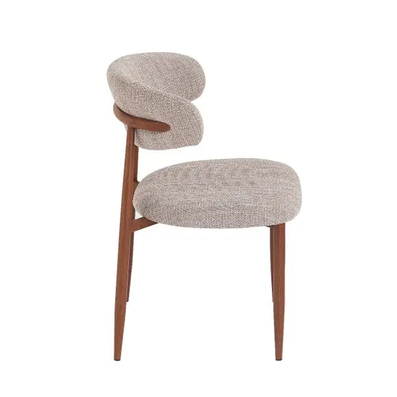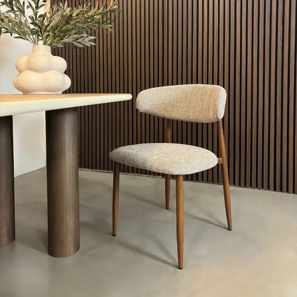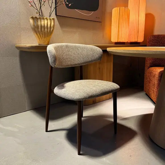 De Reefs Interior Stoel Japandi met walnoot frame is een stijlvolle stoel waarin minimalistisch design en hoogwaardige afwerking samenkomen. Het onderstel bestaat uit één stevig metalen frame, wat zorgt voor stabiliteit en een uitstekende bouwkwaliteit. Dankzij de walnoot houtlook lijkt het frame van echt hout, waardoor de stoel warmte en verfijning toevoegt aan je interieur.