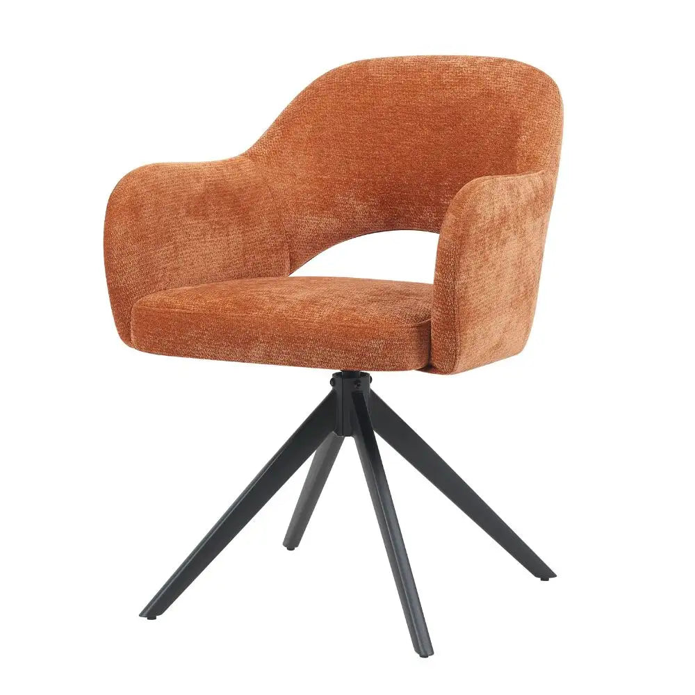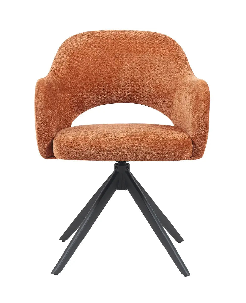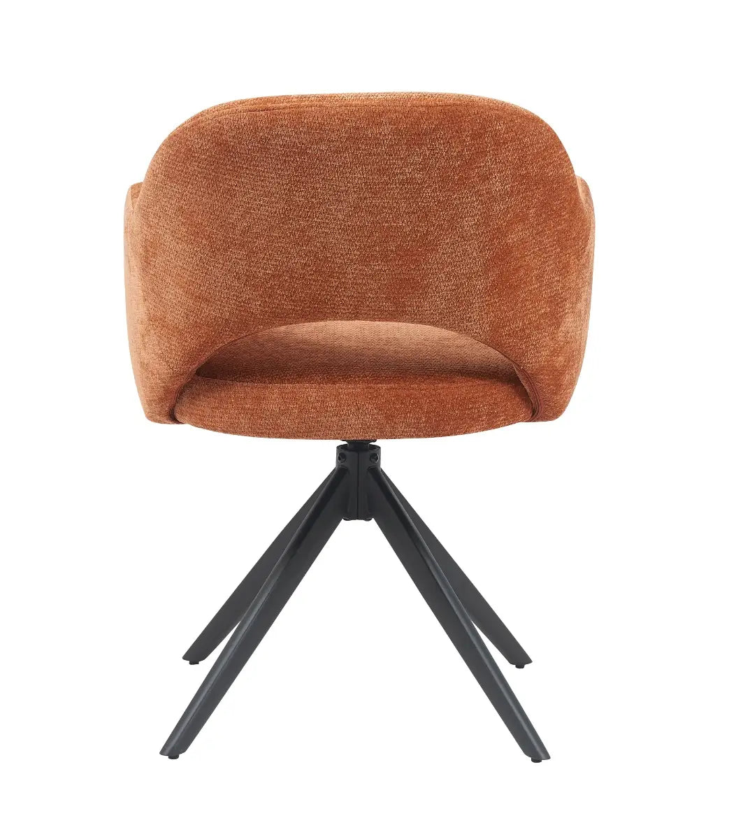 De Mira stoel van Reefs Interior in koper is een uitgesproken en warme verschijning die karakter toevoegt aan elke ruimte. De rijke koperkleurige bekleding voelt zacht aan en trekt direct de aandacht zonder te overheersen. De elegante rondingen, open rugleuning en comfortabele armleuningen maken dit een zitmeubel waar je graag in plaatsneemt, of het nu aan de eettafel is of als accentstoel.