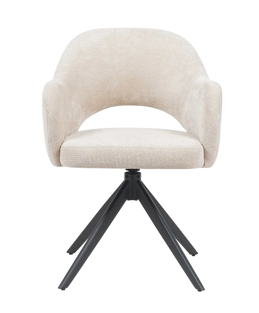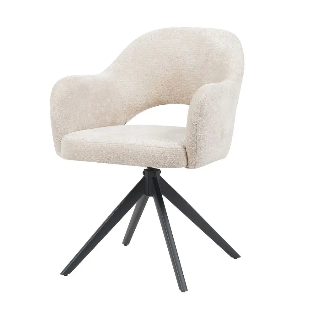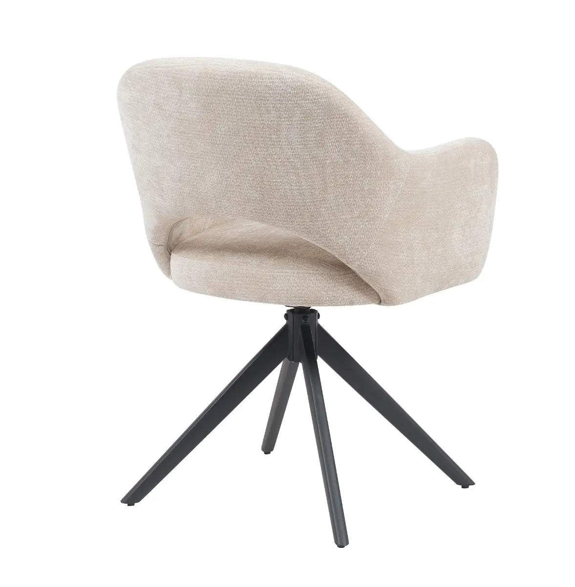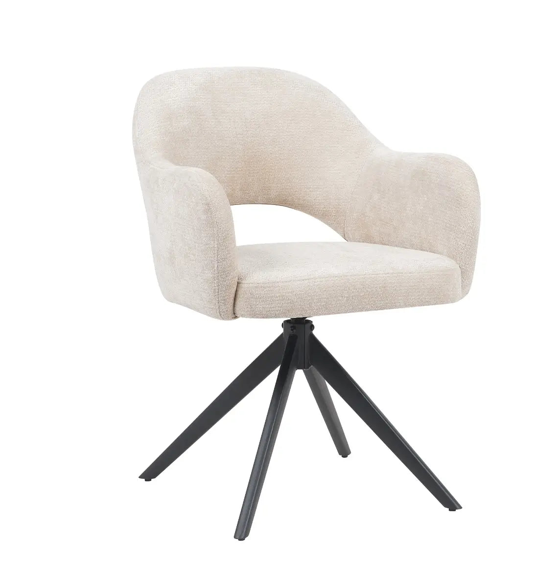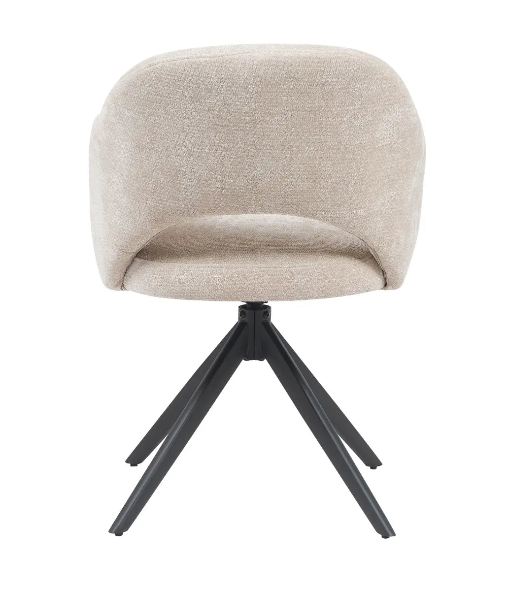 De zwarte metalen spinpoot zorgt voor stabiliteit én een stijlvol contrast met de lichte stof. Dankzij de zithoogte van 51 cm en armhoogte van 69 cm sluit de Mira perfect aan op de meeste tafelhoogtes. De natural uitvoering laat zich moeiteloos combineren met houttinten, zachte kleuren en moderne interieurs.