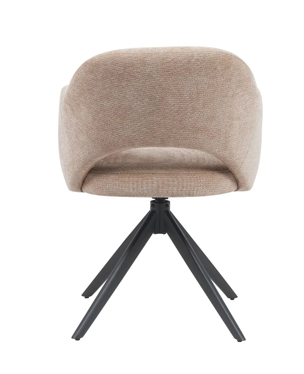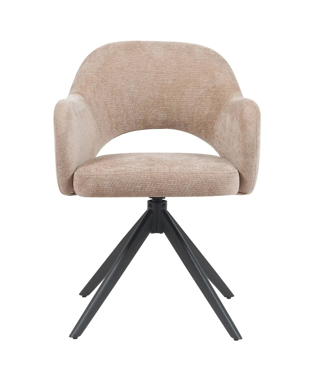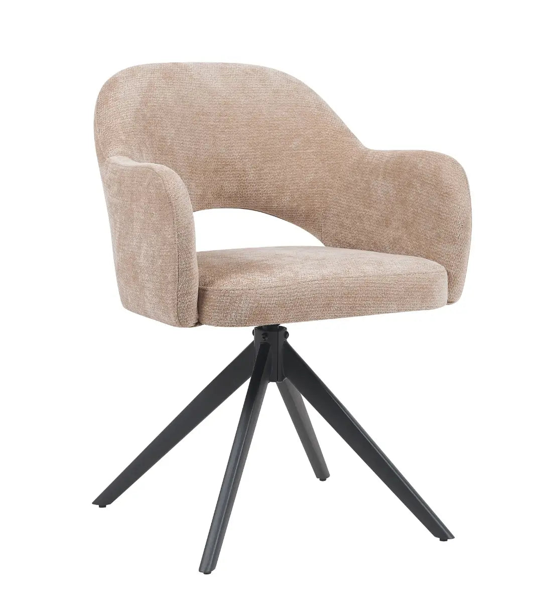 De Mira stoel van Reefs Interior in taupe combineert luxe comfort met moderne functionaliteit. De warme taupekleurige bekleding voelt zacht aan en sluit prachtig aan bij uiteenlopende interieurstijlen. Dankzij de elegante rondingen en de subtiele uitsparing in de rug oogt deze stoel luchtig en eigentijds. De zitting is 360 graden draaibaar en keert automatisch terug naar de originele positie – ideaal voor aan de eettafel of thuiswerkplek.