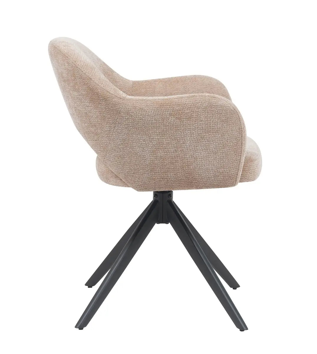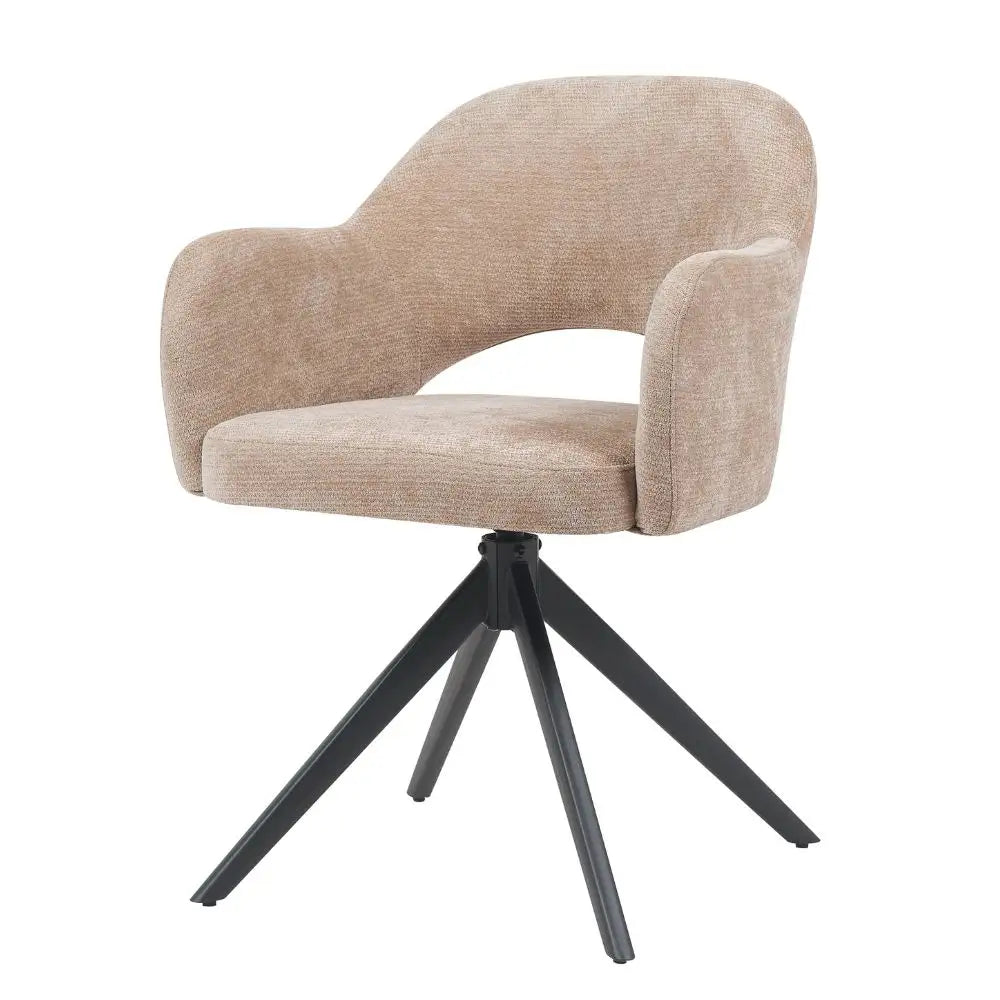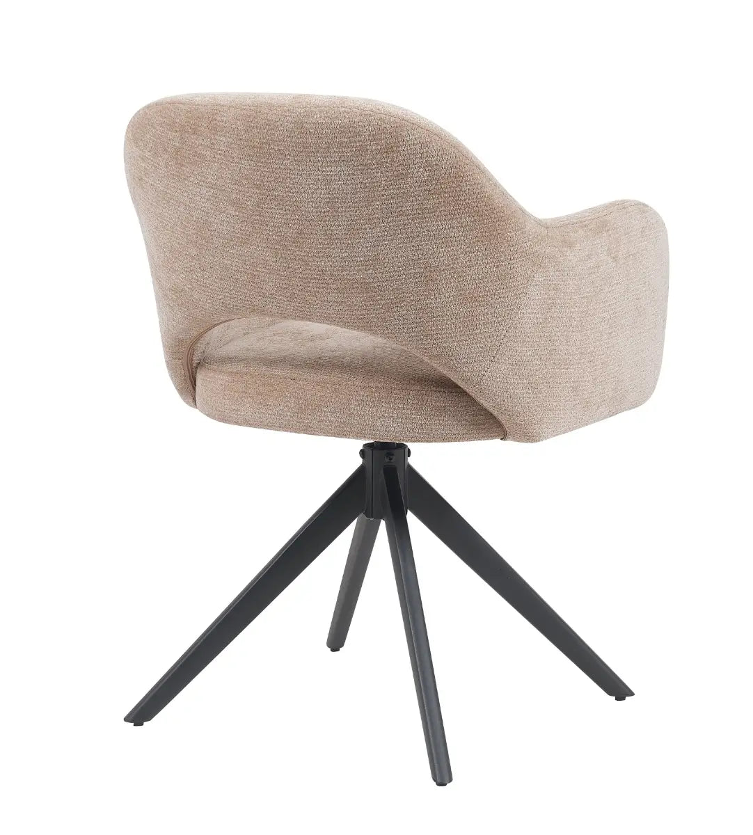 De Mira stoel van Reefs Interior in taupe combineert luxe comfort met moderne functionaliteit. De warme taupekleurige bekleding voelt zacht aan en sluit prachtig aan bij uiteenlopende interieurstijlen. Dankzij de elegante rondingen en de subtiele uitsparing in de rug oogt deze stoel luchtig en eigentijds. De zitting is 360 graden draaibaar en keert automatisch terug naar de originele positie – ideaal voor aan de eettafel of thuiswerkplek.
