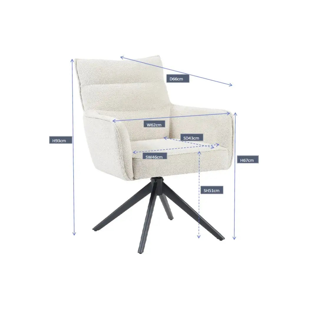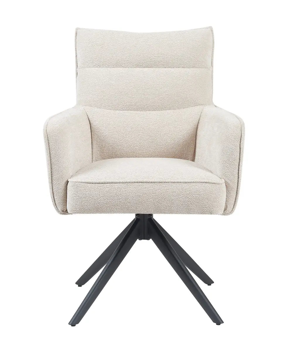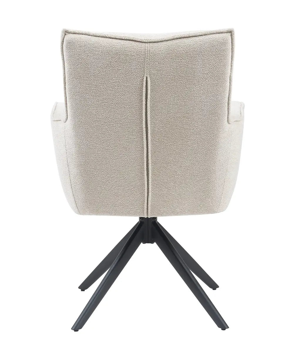 Achter het zachte uiterlijk gaat verrassend veel comfort schuil: de zitting met pocketvering biedt langdurige ondersteuning, terwijl de draaifunctie met terugdraai-mechanisme zorgt voor gemak in gebruik. Of je hem nu aan een lichte eettafel zet of juist als contrast bij donkere accenten, Paul in natural voelt zich overal thuis.