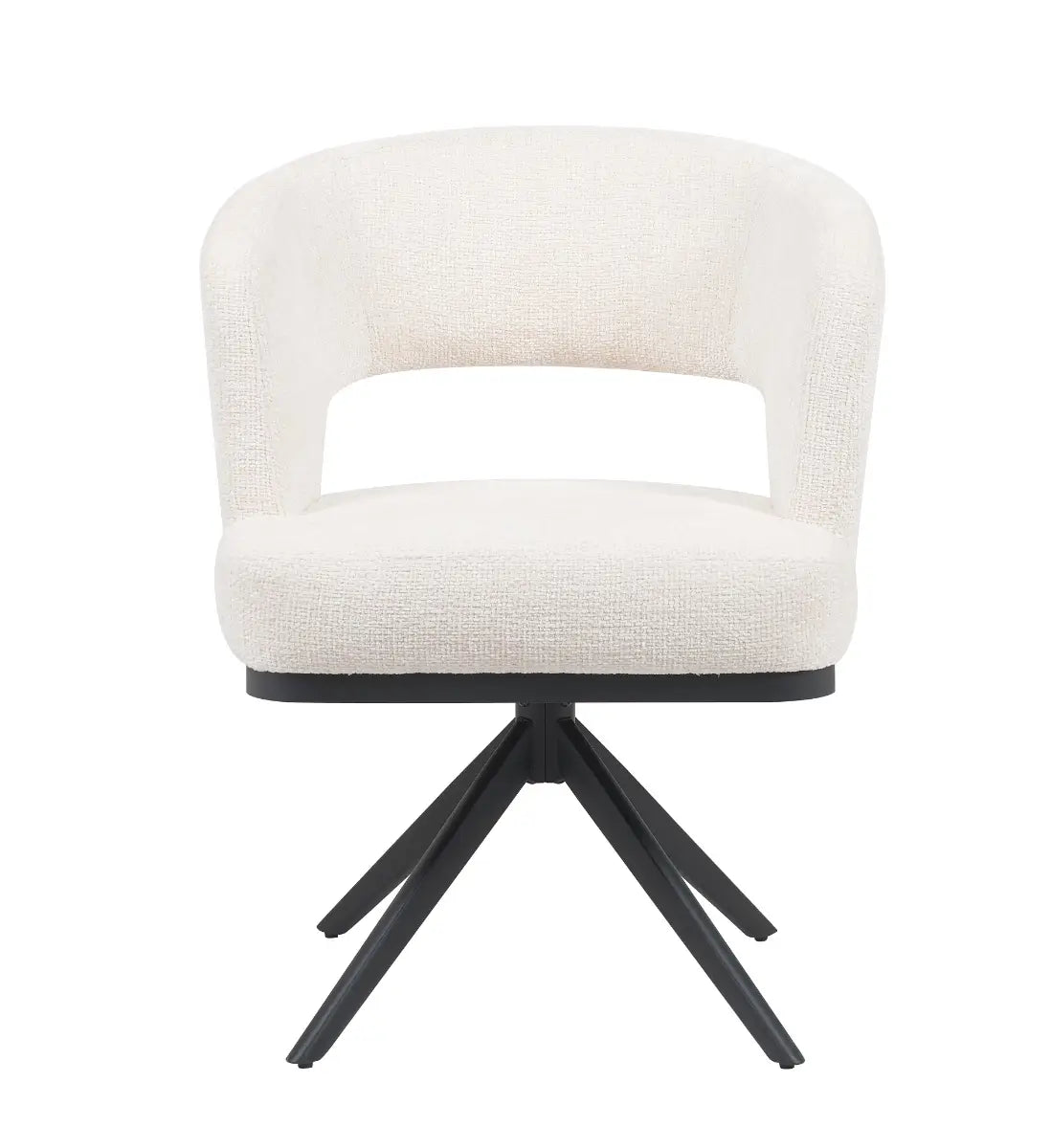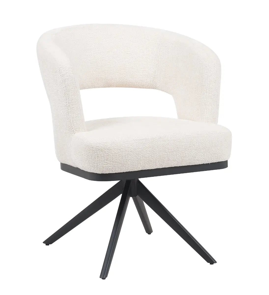Met zijn 360 graden draaibare zitting biedt de Vera optimale bewegingsvrijheid en gebruiksgemak, perfect voor lange avonden tafelen. De stevige zwarte spinpoot vormt een mooi contrast en maakt het geheel eigentijds en elegant. Deze stoel is een blikvanger die comfort en design moeiteloos combineert.